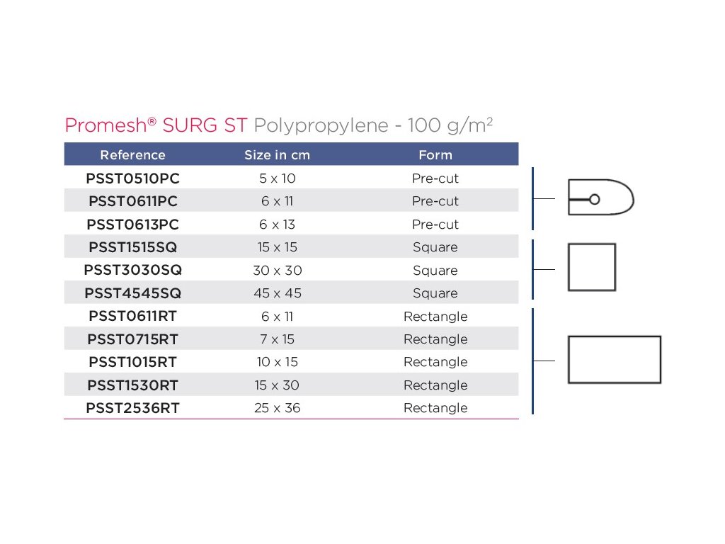 Promesh® SURG ST je štandardná polypropylénová monofilová sieťka